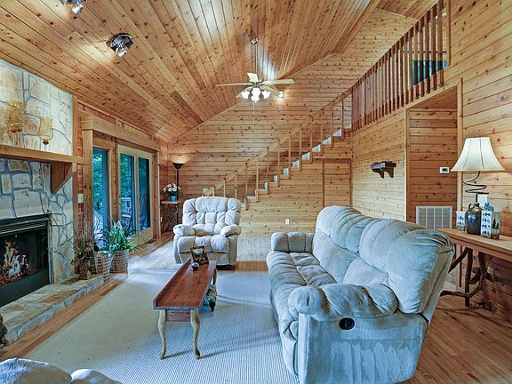 END OF THE ROAD PRIVATE CABIN offers breathtaking views of the mountains and incredible sunsets. Located in well established Double Knob subdivision, this furnished cabin offers beautiful wood interior, a spacious great room with cathedral ceiling, stone gas log fireplace, and a fully covered deck are warm and inviting. Large bedrooms and loft allow for plenty of company.