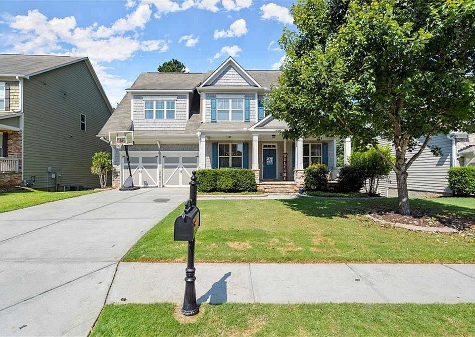 Marvelously Stylish and Charming Home with Unfinished Walkout Basement! Tucked away in the popular subdivision of Rosewood Park and just moments from Russom Elementary School, Martins, Starbucks & Kroger, this 5BR/3BA, 3,092sqft residence dazzles the senses with stunning craftsman architecture, a classic Southern front porch, attractive shaker siding, and stately exterior stone accents. Originally built in 2012 this captivating home features gleaming hardwood floors, abundant natural light, modern paint hues, dedicated main-level office, bedroom on main, and an elegant formal dining room with wainscoting and a chandelier. The kitchen offers a stainless-steel gas stove, granite counters, center island, pantry, breakfast nook, and an adjoining family room with a fireplace. Impressively oversized for both form and function, the luxurious primary bedroom has tray ceilings, ample closet space, and an en suite boasting a soaking tub, separate shower, and dual sinks. There are three additional upper-level bedrooms along with a media room, full unfinished walkout basement, and a fenced-in backyard featuring a raised deck and firepit. Other features: All new carpet throughout, 2-car garage and laundry room. Near restaurants, shopping, parks, and only 35-miles to Downtown Atlanta!