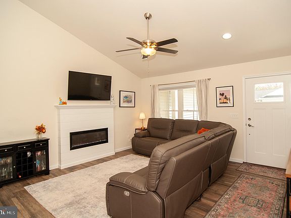 This lovely 4-bedroom, 2-bathroom home, built just 4 years ago, offers 1,476 sq ft of easy, single-story living. A charming front porch welcomes you into a spacious, open-concept living area with vaulted ceilings, luxurious vinyl plank flooring, recessed lighting and a cozy fireplace. The thoughtfully designed split floor plan ensures privacy—two generously sized bedrooms with large closets share a full hall bathroom on one side, while the expansive primary suite, complete with an ensuite bath and walk-in closet, is located on the other side of the home. The fourth bedroom, currently set up as a nursery, also could work perfectly as a home office or guest room, offering flexibility to suit your needs. The kitchen boasts sleek blue cabinetry, granite countertops, a classic subway tile backsplash, stainless steel appliances, and a deep sink under a window overlooking the backyard. Sliding doors lead outside from the dining area to a large patio, ideal for both dining and lounging, and the fully-fenced backyard provides a safe space for kids and pets to play. Additional features include a spacious laundry room and a two-car garage which offers both an interior access door and a separate side door leading to the yard. The garage is fully insulated and drywalled, and includes access to the crawl space—great for additional storage. Located close to routes US-13 and DE-1, Dover Air Force Base, Killens Pond State Park, shopping, and dining options, this home offers convenience in a tranquil location. The community features sidewalks, streetlights, and a community park, and is situated in the Lake Forest School District. Don’t miss out - schedule your showing today!