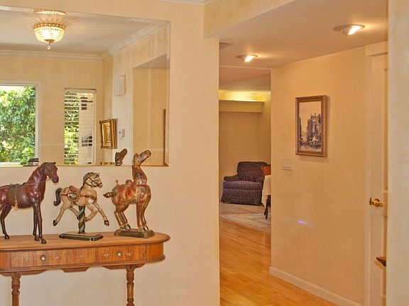 Follow the stone walk past the fragrant orange tree to the front door of this completely remodeled unit. Formal entry with polished marble floor leads past the elegant powder room with marble wainscoting & floors into the spacious entertaining area. The living room has a wood burning fireplace w/custom tile surround, hardwood floors & recessed lighting. A glass slider leads out to the patio w/ a view of green space. Large dining area w/ custom built-ins. Stylish kitchen features black granite countertops and backsplash along with butcher block counters, all Stainless appliances: LG bottom freezer refrigerator w/ ice & water dispenser, GE Profile 5 burner electric range w/ 2 ovens, Samsung microwave/convection, Thermador dishwasher, walk-in pantry, under cabinet lighting & halogen spot light fixtures. Cathedral ceiling in master w/ balcony overlooking green space, travertine & Toto dual flush in bath, walk in closet. Skylights in upstairs bathrooms, views from every room. Extra storage.