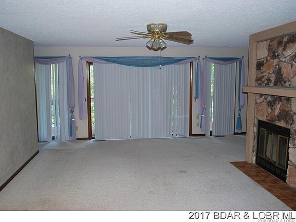 Quiet Beautiful Cove! 4 bedroom, 3 Bath Waterfront Home in a Great location. This Ozark gem is Selling as is well below market price to accommodate for the need of TLC. This Lakefront getaway has two separate kitchens, 2 living areas with a fireplace on the entry level. The 110 ft of Lakefront comes with a 2 well covered dock and swim platform. Priced to Sell!