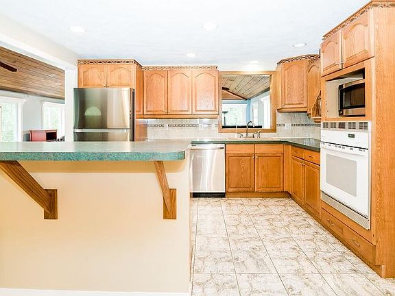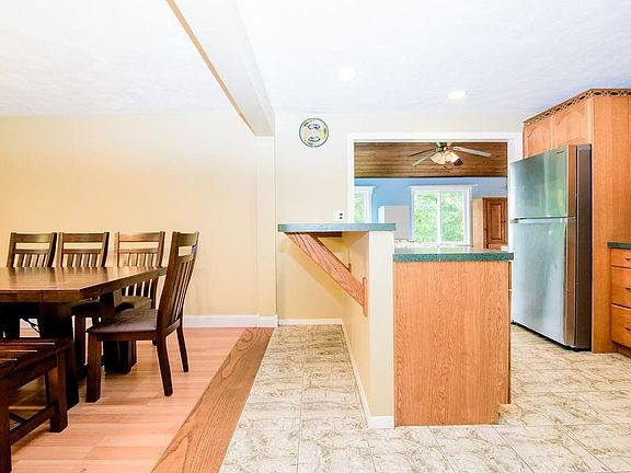 Situated in an ideal commuter location on Rt 111 and offering a short commute to the center of town, highway access, shopping and the NH line. This property sits on just under an acre of land, is backed by a lush tree line, and borders conservation land. Inside you will find a delightful 4 Bedroom, 2 Full Bath Gambrel with 2,000+ Sq Ft to spread out in. Eat-in Kitchen is filled with an abundance of cabinet space and a breakfast bar opening into the quaint Dining Room. Wrapped in a sea of windows is a natural lit Family Room that invites you in with its grand wooden cathedral ceiling. Cozy up on those crisp nights next to the Brick Fireplace in the Formal Living Room. Desirable 1st Floor Bedroom and Full Bath complete the main floor. The 2nd Floor presents a large Master Bedroom with Double Closets, Full Bath and 2 Additional Bedrooms. Stop in and see what convenient location and functional style are all about.