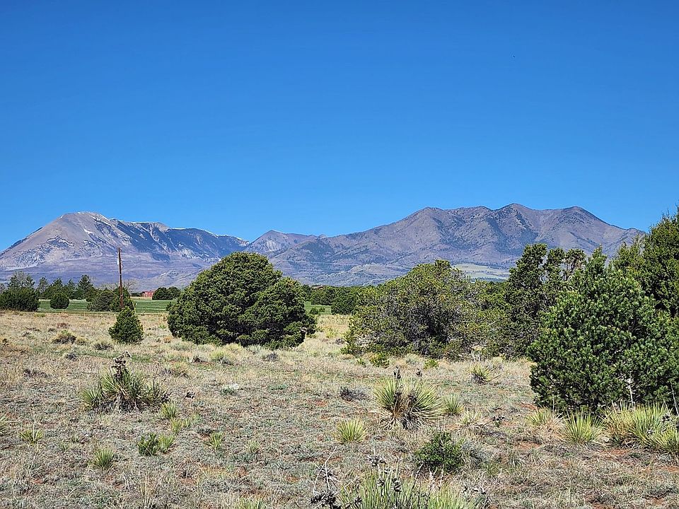 Views, Views, Views! Spanish Peaks, Sangre de Cristo Mountain Range, and Greenhorn Peak are all visible from the property. Pinon Pine, Cedar, and Juniper trees scattered through out this gently sloped property. Rural property without all of the gravel roads! 15 minutes outside of Walsenburg on paved road. Year round access. Power pole and phone box on easement close to property.