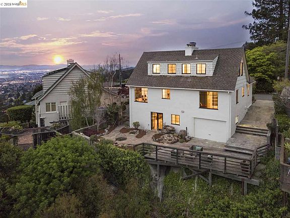 You'll be struck by the breathtaking views, but the house will delight you! It's been stylishly updated with an "urban farmhouse" flair. Convenient layout, lots of light, and beautiful finishes define the feel of it. The downstairs family room leads out to the dramatic deck and garden terrace, complete with a cheery water feature. Workshop/flex-space in former garage. Serene Berkeley Hills neighborhood, between the Gourmet Ghetto and Tilden park.