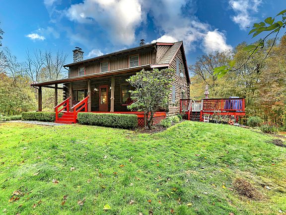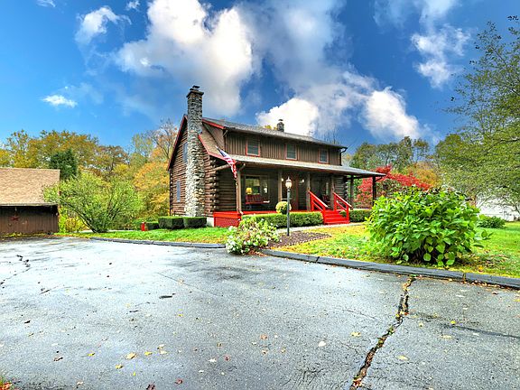 Set back from the road on over 2 acres, this handcrafted full-scribe log home offers peace, privacy, and the kind of warmth that only true country living can provide. Picture arriving home for the holidays, the porch strung with lights, and a fire crackling inside as snow drifts softly outside. At the heart of the home is a stunning stone fireplace, built with stones gathered from the property and topped with a hard rock maple mantel. For added comfort, two wood stoves, one in the rec room and another in the utility area, create a cozy atmosphere throughout the seasons. The home comes with six cords of seasoned wood, so you'll be ready this winter. The country kitchen, complete with a brand-new refrigerator and dishwasher, flows into a welcoming dining room and opens to a multi-level deck overlooking a landscaped backyard with flowering trees. A brook meanders through the 2.18-acre property, completing the retreat setting. A first-floor office or den with a closet offers flexibility to serve as a 4th bedroom if needed. The finished lower level provides a rec room with French doors to the backyard. Added conveniences include 200 amp service, a central vacuum system and a laundry chute. Car lovers and hobbyists will appreciate the oversized two-car garage with workshop and loft, plus three open bays accessible from the back for storage or projects. Conveniently located near Rte 11 and I-395.
