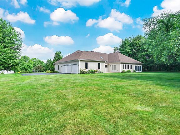 Stunning Laplante built ranch in the desirable Nottingham neighborhood in East Longmeadow. The first floor kitchen, dining, & family room are all open with cathedral ceilings & gleaming hardwood floors throughout w/ a gas fireplace in family room. The entertainer's kitchen is fully equipped w/ stainless appliances & a walk in pantry. The massive primary suite is large enough to create a work out space or reading nook & showcases a walk in closet, double vanity, jacuzzi tub & walk in shower. This home has enough space to host holidays w/ all family & friends & has been built with accessibility in mind. The pool table room off the great room is sure to keep guests entertained & the first floor laundry room is the cherry on top. Three season sun room for peaceful evenings overlooking the private, flat, rear yard with plenty of space for yard games or a garden. Outside living is complete here with a Trex deck, & front covered porch perfect for enjoying the sunset in your Adirondack chairs.