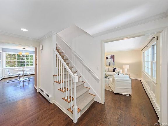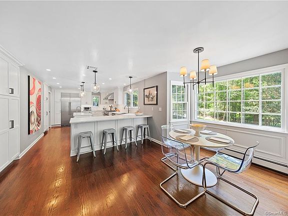 Effortless living and the location can't be beat! Coveted location in the heart of Old Hill, sits this perfectly sized and meticulously maintained 4-bedroom 3.5 bath colonial. The lovely front porch welcomes family and friends to the fully finished three level home. Enter to find a modern twist on a traditional floorplan. The heart of the main level is the stunning renovated eat-in kitchen with butlers pantry/wet bar, that spills effortlessly out into the dining area and deck and is flooded with light. Three sinks, custom built-in refrigerator/freezer, 6 burner range, double oven and USB outlets are a few of the functional finishing touches. Down the hall, pass a tucked-away office with a pocket door and powder room then arrive in the massive family room with beamed vaulted ceiling, wood burning fireplace, and custom sliders to the screened porch. On the upper level, the primary bedroom features oversized closet space and a barn door to the ensuite spa bathroom complete with dual showers. Three additional family bedrooms with hardwood floors share a renovated hall bathroom. The fully finished lower level offers a perfect flexible space suitable for many uses with a full bathroom and office and access to the 2-car garage. Relax or entertain using the outdoor spaces including a wood deck and separate screened porch overlooking a lush tree-lined lawn. This prime Westport location offers easy access to commuting routes, schools, YMCA, and the vibrant downtown area.