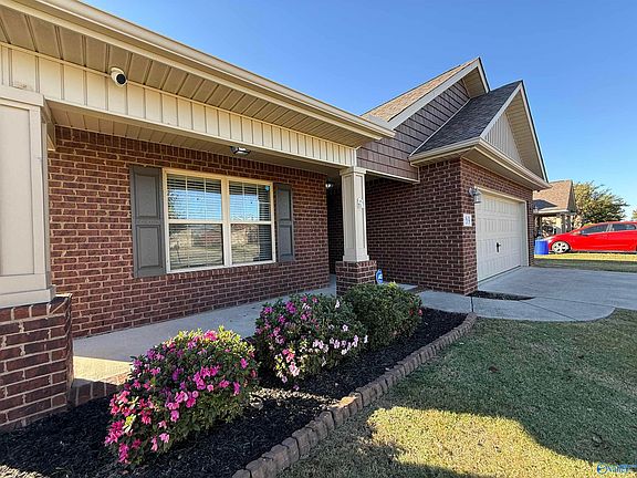 Adorable Craftsman style 3 bedroom/2 bath + FLEX room home located in the highly desired Priceville area school district & minutes away from I-65. The exterior include garage, covered patio, front porch, & storage shed, privacy fence. Architectural details include expansive ceiling heights, multi trey ceilings, arched doorways, oversized island with bar seating, pantry. Large open concept living/dining/kitchen, LVP Flooring throughout, granite countertops in kitchen & baths. Retreat to the Master Ensuite featuring dual walk in closets, soaking tub, separate tile shower, dual vanities & granite countertops. Guest bedrooms have oversized closets. Separate laundry, security cameras.