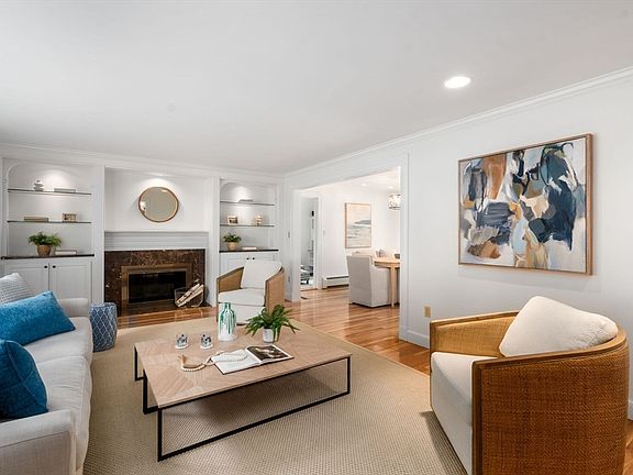 Breathtaking views of Little Pond grace this rare waterfront 10 room retreat, with 3 levels of thoughtfully designed living space, it is a rare opportunity to live on the water’s edge. The 1st level features a spacious living room with gas fireplace and built-ins which flows into the dining room with slider opening to an expansive deck and sweeping views, a well-equipped gleaming kitchen and family room. This home boasts 4 generously sized bedrooms including the primary suite with water views, fireplace, window seat, vaulted ceiling and sumptuous bath with charming Juliette balcony. The bright LL offers a game room, workout area, full bath, home office as well as access to a beautiful grounds, brick patio and custom fire pit. A 2-car garage, central air, gleaming hardwood floors and convenient location complete this home.