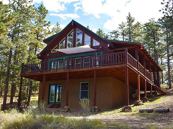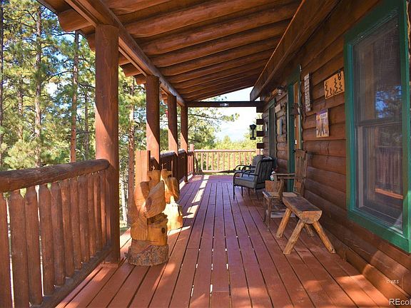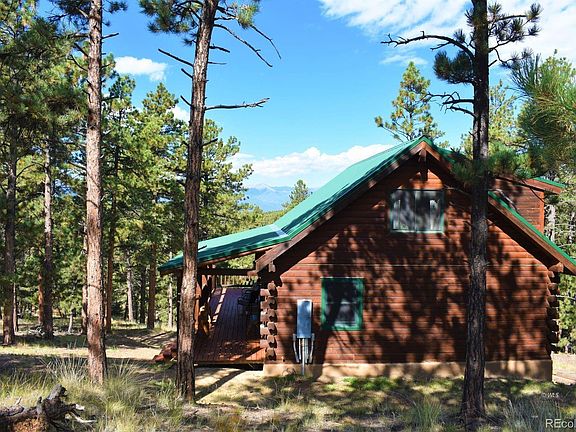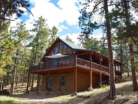 This beautiful custom 8" D Log Home is nestled in the tall Ponderosa Pines in desirable Cuerno Verde Pines Subdivision. Located on a quiet culdesac where you will enjoy complete serenity at your mountain getaway. Built to take in the beautiful Sangre De Cristo mountain views from inside the home and outside on the wrap around deck and covered porch providing a peaceful spot to relax and unwind. Inside the open floorplan welcomes you with vaulted ceilings and plenty of windows for majestic views. Beautiful wood accents throughout with interior log walls, tongue & grove ceilings, and hardwood floors. The living room opens into the dining area and kitchen, and a bedroom and full bathroom with jetted tub completes the main level. Upstairs you will find a spacious open loft for watching TV, playing games, or crafting, and a 2nd bedroom and bathroom. The walkout basement is almost finished with windows, framing and drywall completed for a rec room, 3rd bedroom and bathroom. Basement electrical is complete and rough plumbing for the bathroom. The home includes furnishings, in floor radiant heat, whole house water filter, and many custom touches throughout. The mountains are calling!
