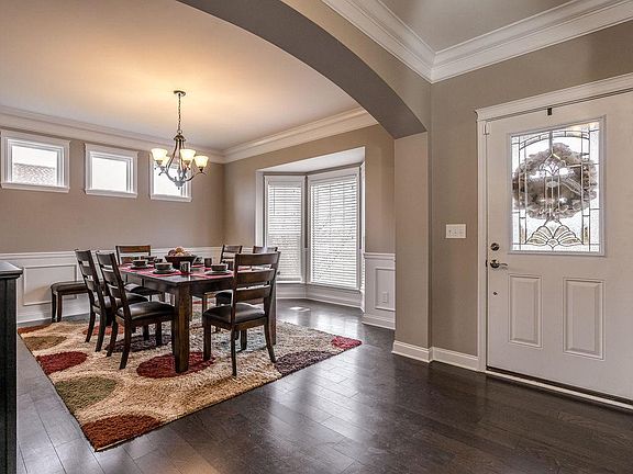 Absolutely gorgeous home on golf course property in highly sought after Persimmon Ridge! On the main level you will find a formal dining area with wainscoting and a butler's pantry leading to the kitchen. The kitchen includes an oversized island equipped with stainless steel appliances, granite counter tops, brushed chrome pull-out faucet, recessed lighting, raised-panel cabinetry with crown molding. Right off the kitchen is a breakfast area that is open to the spacious family room which features a corner gas fireplace, ceiling fan, and crown molding. The large home office is located behind the family room with room for two workspaces and more! There is elegant hardwood flooring throughout the kitchen, breakfast area, foyer, mud room, office and powder room. Upstairs you will find the BEAUTIFUL owner's suite with trey ceiling and double crown molding. The deluxe private bath features two separate sinks with granite tops, an over-sized shower with bench, separate tub, ceramic tile, ceramic flooring and two walk-in closets! There are 3 additional bedrooms, one with a private bath and a Jack and Jill for the other two. The laundry is also conveniently located upstairs with all the bedrooms. If nearly 4000 square feet above ground isn't enough, head to the finished basement that also includes another full bath, loads of space for entertaining and plenty of storage.This home also boast a 3 plus car garage! Schedule a private viewing today to see how amazing this home really is!