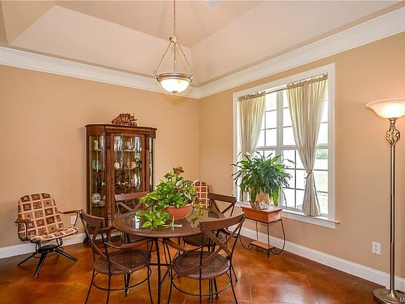 HERE IT IS! The home you've been waiting for!!! This 4-bedroom 3-bathroom beauty sits on 3 +/- acres of flat land and is priced to SELL!!! As you enter the covered front porch you'll be amazed at the tall ceilings and the maintenance free stained concrete floors! The formal dining room is sure to impress you with the BEAUTIFUL upgraded crown molding package! The owner didn't hold back during the building process of this home! The living room offers lots of windows overlooking the acreage which also allows for lots of natural lighting throughout the home! WOOD BURNING fireplace too!! The kitchen features a nice high-top breakfast bar, lots of custom cabinets, pantry, stainless steel appliances and a breakfast nook overlooking the acreage! Entering the master, you'll find a large bedroom with TALL ceilings, a huge arched window with a view of the land and two closets! The Master Bath offers a garden tub for soaking after a long hard day at work, a separate walk in shower, double vanities and a private commode room! There are two other bedrooms on the main level and one HUGE bedroom upstairs with its on full bathroom! Out back is a nice covered patio, which is perfect for all of your outdoor entertaining!! Double Car garage too!!! This home will NOT last long! Call ME today for a private tour!!