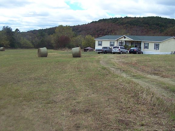 The property has 2 homes on it. One is a 1000 sq ft brick home which has 3 bedrooms and 1 bath. The other is a double wide with 4 bedrooms and 3 baths. Best view of the Kiamichi mountains in the area! Pasture land, hunting, creeks and more. We had been using the house as an office. Less than 1 mile from Moyers school. 2 storage buildings on property. 27 foot pool and hot tub room built on back of double wide. Front porch with metal ramp.