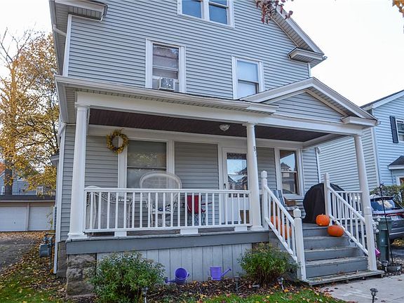 Excellent investment opportunity with this lovely duplex located on a quiet street in Rochester City School District. First floor unit features 2 bedrooms (possibly 3) and 1 full bath that has been nicely updated. Eat in Kitchen with tile floors and living area with hardwood. Rent currently $800. The upstairs unit has 2 bedrooms, 1 bath, eat-in kitchen and living room, along with an enclosed porch at the back of the unit. Rent currently $650. Both units are leased month to month. Home has a nice partially fenced back yard, full basement and walk up attic.
