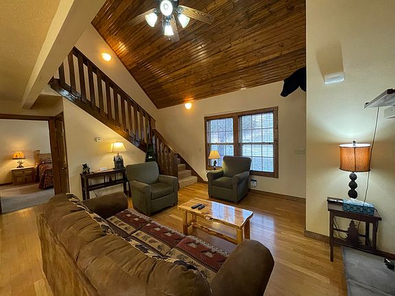 Welcome to the premiere location on Forest Lake at Stonebridge Village! This beautifully decorated unique lodge is actually a dual sided Lodge with Unit A being a one bedroom 1-1/2 bath lodge with it's own private full kitchen, dining room, and screened porch. Unit B is a 2 Bedroom unit with 2 king beds along with a loft twin bedroom for the kids. This unit includes a massive stone gas fireplace, full kitchen with bar seating, private screened porch overlooking the lake, with an adjoining lock out door between each unit. This lodge at Forest Lake is so versitile! Use one side for private family use and rent the other or rent both sides separately or as one unit sleeping a total of 12. All this within a few steps of the out door pool, beach volleyball, pavilion, playground, outdoor grills and so much more. Catch and release fishing in beautiful forest lake which has a paved walking trail around the entire perimeter. If this isn't enough for your dream vacation spot we have gorgeous Ledgestone Golf Course with 18 holes of spectacular enjoyment, one of the best driving ranges in the area, complete full service restaurant, club house, pro shop, exercise facility, tennis courts, basketball and so much more! That is just what you have available to do within Stonebridge Village! This beautiful vacation lodge is 10 minutes from Silver Dollar City and the pristine waters of Table Rock Lake. Launch your boat at Indian Point Marina only 10 minutes away. WAIT!!! There is more, beautiful Branson with shopping, shows, Branson Landing need I say more? This is the complete vacation package. Investment Opportunities galore!! Come take a look at this great Lodge before it is gone!