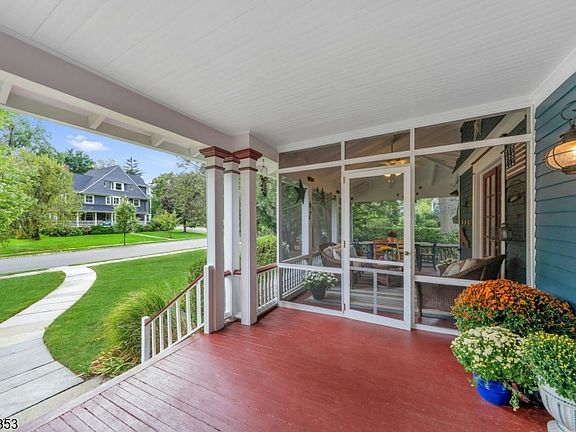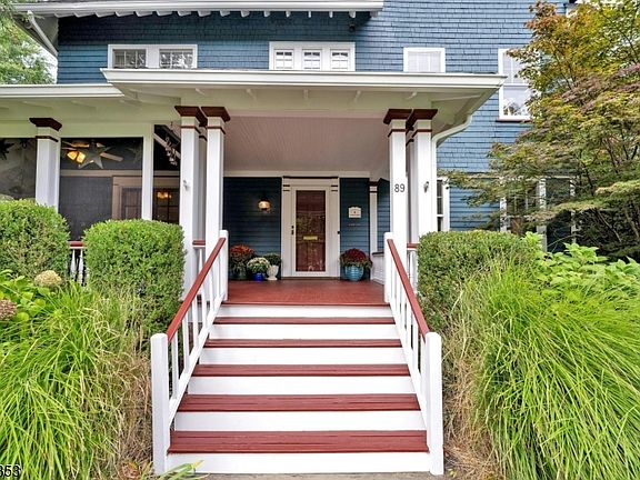 Prepare to be captivated by 89 Porter Place where classic elegance, modern updates, and an exceptional setting come together in one of Montclair's most beloved neighborhoods. Set on a beautifully landscaped lot with mature plantings that bloom year-round, this 6-bedroom, 3.5-bath Colonial is a rare blend of beauty, privacy, and effortless living. Sunlight floods the home, beginning in the gracious foyer with its striking open staircase that connects all three levels. The main floor flows seamlessly, featuring gleaming hardwood floors and spacious living, dining, and family rooms perfect for entertaining or relaxing. The renovated kitchen impresses with custom Parsons cabinetry, granite countertops, built-in bench seating area, and a center island. French doors off the dining room open to the most enchanting screened-in front porch, while a wisteria-draped pergola shades the rear deck both enhanced with Sonos speakers, along with the kitchen. Upstairs, the second level offers a primary suite with full bath, two generous bedrooms, another full bath, and flexible walk-in closet with laundry. The third floor features three more bedrooms with soaring ceilings, an additional full bath and plenty of storage ideal for guests, work, or creative space. Extras include, central air, main level powder room, exterior-access elevator, finished lower level and a two-car garage. Just minutes from the vibrant downtown Montclair, 89 Porter Place is gracious, inviting, and truly one of a kind.