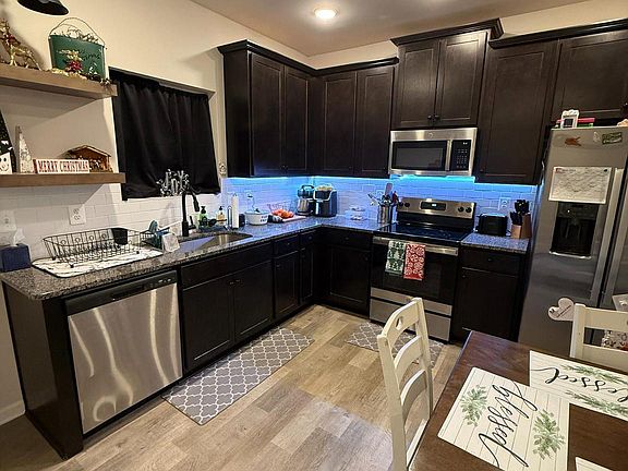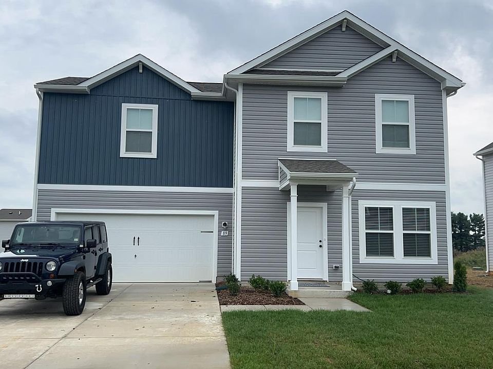 Stunning, professionally designed Farmhouse-style home with decorator package included! This move-in-ready 3-bedroom, 2.5-bath home features the popular THE BLUEBELL open floor plan and is only 3 years old—priced to sell and won’t last long. The kitchen offers granite countertops throughout, stainless steel appliances including a GE double-door refrigerator, multi-cycle dishwasher, electric range/oven, built-in microwave, and disposal. Luxury vinyl flooring and wall-to-wall carpeting complement the home’s 9-foot ceilings on the main level, along with luxury baths and a stylish powder room. Energy-efficient features include propane heating and hot water, Barricade Plus house wrap, “Air-Tite” energy seal package, 14 SEER air conditioning, low-E double-pane windows, an insulated fiberglass front door, and a programmable thermostat. Additional highlights include a two-car garage, and functional layout ideal for modern living. Vinyl fenced in back yard. Ready to move in—schedule your showing today before it’s gone! Professional photos coming soon!