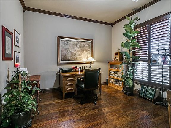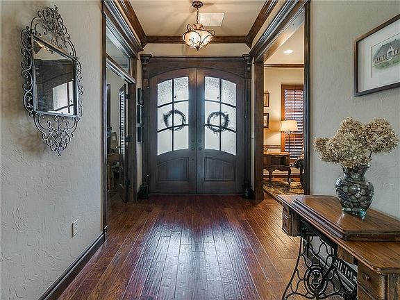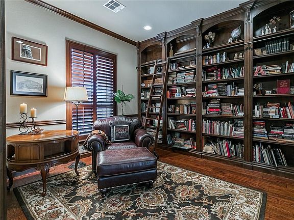 This 2-story, located in a quiet wooded addition has double entry doors, thermal windows, security & sprinkler systems, a whirlpool tub & separate shower in master bath, 9-10' ceilings downstairs, and a double pullman ceiling in the master bedroom. The living area includes a built-in bookcase/fireplace. Kitchen has granite countertops with glazed tile splash, double ovens, a tall walk-in pantry, and a center island. The library's full-wall bookcase is accessed by a rolling ladder. Hardwood floor & ceramic tile fills most of downstairs. Knotty alder woodwork with bullnosed corners & crown moldings, accents most of the house. Upstairs bonus room w/ full bath can double as 4th bedroom, media, craft, or recreational room! Jack&Jill Bath is between 2nd & 3rd bedrooms which have walk-in closets. The patio has built in speakers and separate concrete grill area with natural gas outlet. 4 car garage with double wide driveway includes a 5ft. extension and versa lift for huge attic storage help!