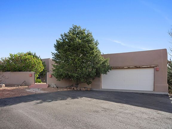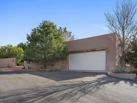 Discover the elegance of this home in the prestigious Las Lagunitas community. The open floorplan adorned with exquisite Vigas and Beams, and pristine brick floors that invite you to explore further. As you enter, the inviting north-facing portal offers a glimpse of Santa Fe's iconic mountain views. Sunlight bathes the living, dining, and kitchen areas through clear-story windows, creating a luminous ambiance. The ''sleep-wing'' houses a luxurious Primary Suite and two versatile bedrooms, each with its own private bath. Finishing touches include diamond plaster walls perfect for showcasing art, nichos, and two cozy Kiva Fireplaces. Experience a harmonious blend of beauty and comfort in this exquisite home which sits on a 1.35 acre lot and is only 45 minutes away from ABQ/Rio Rancho.
