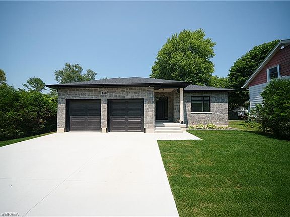 Welcome to 89 Robinson Street in Port Burwell. This newly built 3+2 bedroom, 3.5 bathroom bungalow blends quality craftsmanship with thoughtful design, offering 2,267 sq ft on the main floor, plus 2,074 finished sq ft below and a heated attached 2-car garage. Set on a deep 180-foot lot, it showcases a crisp front exterior with fresh sod and poured concrete driveway. The private backyard is a true highlight, quiet, tree-lined, complete with a spacious covered concrete patio perfect for outdoor lounging and entertaining. Inside, you're welcomed by a large, foyer that sets the tone for the spacious layout with 9' ceilings. Recessed lighting, modern fixtures, and large windows bring in warm natural light. The custom kitchen is a showstopper with quartz counters, ample cabinetry, an island with seating, a 48" dual fuel gas range with 8 burners and a pot filler, dishwasher, and stainless steel apron-front sink. The kitchen flows effortlessly into the dining area and living room. The living room features a paneled accent wall with a sleek electric fireplace, framed by a tray ceiling finished in tongue-and-groove woodwork for added character. Double doors open to the primary bedroom with a walk-in closet and 5-piece ensuite with double sinks, glass shower, and a freestanding tub. Two more bedrooms with double-door closets, a 5-piece bath with tub/shower combo, a mudroom with storage, laundry room, 2-piece powder room, walk-in pantry, and garage access complete the main level. The expansive basement includes 2 bedrooms, a 3-piece bath, large rec room, with potential to add a kitchen for a secondary living area. There's also a dedicated storage room, utility room and cold cellar. Port Burwell is a peaceful lakeside community on Lake Erie, known for its sandy beach, scenic provincial park and small-town charm. With easy access to Highway 19 connecting to Tillsonburg and Highway 401. A must-see home offering space, style, and serenity—schedule your private showing today.