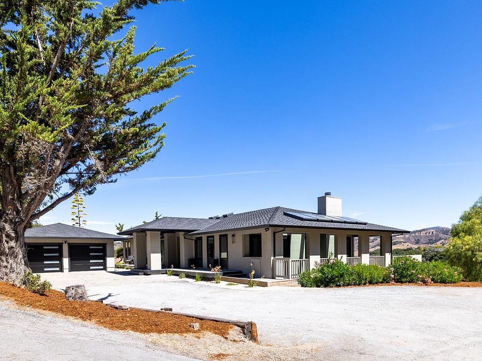 This stunning modern home has been recently remodeled with architectural precision to seamlessly blend indoor and outdoor living. Nestled in a serene country setting, it offers breathtaking views of Castle Rock. Situated just above Chamisal Tennis Club and only minutes from Highway 68, the property enjoys both privacy and convenience. The home features a new roof, updated electrical and plumbing systems delivering the high standards expected in a quality residence. Additional upgrades include new windows, doors, skylights, and flooring throughout. The kitchen and bathrooms have been completely renovated with contemporary finishes. A unique highlight is the newly created artist studio, featuring a private entrance and a full bathroom, perfect for create work, guests, or a private office.