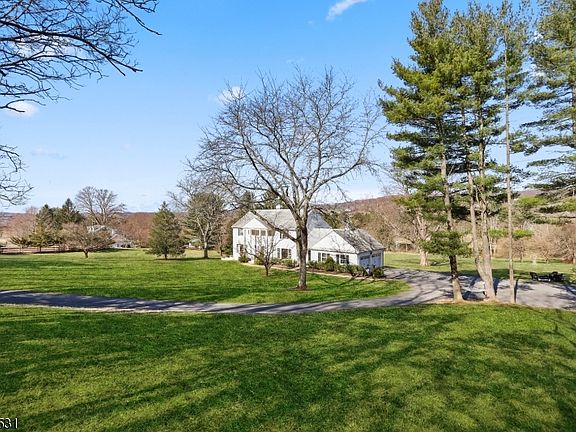 Welcome to this traditional colonial home nestled in the picturesque Roxiticus Valley region of Mendham Twp. The home sits on five beautifully pastoral acres. The property gently slopes to the inground pool surrounded by views of Roxiticus Valley. Set back from the road, this 4 bed, 2.5 bath home offers country living while min. from shopping and dining. Featuring front to back formal LR, FR with fireplace, formal DR and off the kitchen, a sunroom showcasing mountain views and streams. A mudroom with laundry complete 1st floor. Upstairs the master bedroom has an en suite bathroom with shower stall, two vanities, and two walk in closets. The three additional bedrooms have large double closets and hall bath complete the 2nd floor. The walkout basement is unfinished but has plumbing for future bathroom.