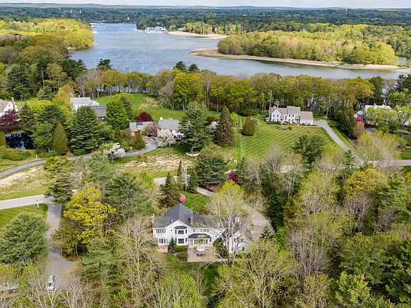 The turn on to Royall Point Road has a way of exciting the senses and calming the soul. This premier Yarmouth neighborhood spanning the banks of the Royall River is awash in color & light as Spring takes hold on the coast of Maine. 89 Royall Point is graciously framed by masterful landscaping, inviting you home to this entirely remodeled 5 bedroom, 3 full bath, 2 half bath, 4,100 square foot Dale Bragg constructed residence. Through the front door, you are welcomed to a two-story foyer & a view through the dining room's large picture window into the private & level backyard. On the southern end of the home, find the grand living room with maple floors, a wood burning fireplace, & french doors to the gardens. A spacious first floor office with a private entrance provides exceptional work from home space. Back through the main hall, you enter an open concept eat-in kitchen with white cabinets, granite counters, high-end built-in appliances, abundant natural light & a cozy sitting area around a wood burning fireplace with doors to the back patio. From here you have access to a mudroom, the 3 car garage, and a back staircase leading up to 2 private bedrooms with a shared bath, all connecting through to the rest of the 2nd story. The primary suite features vaulted ceilings, a wood burning fireplace, a marble bathroom with a walk in shower, large closet, & oversized windows. Two additional bedrooms, one with the option of functioning as an ensuite, & a large laundry room round out the second story. In the basement, a recently finished bonus room & 1/2 bath opens to an unfinished space with ample storage space. With central air conditioning throughout the home, a newer roof, & new hot water heater, this home is highly functional & proudly maintained. With shared river frontage & various access points to the water, this property offers an unmatched lifestyle, only minutes to Yarmouth Village, Sandy Point beach, various marinas, & only 15 minutes to downtown Portland.