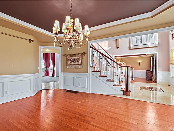 Welcome to this absolutely gorgeous property in Wappingers Falls that is 5,088 square ft of elegance. This house features a beautiful marble foyer entrance with a grand double staircase, multiple living/sitting rooms, plenty of room for entertaining, huge kitchen, and a deck to the backyard. Upstairs features a master bedroom with bath and 2 WIC, 3 additional bedrooms each including a full bathroom. An unfinished walk out basement with plumbing roughed in for a bathroom, and a 3 car attached garage. Some additional features are a stone floor to ceiling gas fire place, Juliet balconies overlooking the entrance foyer, additional breakfast nook, office with custom cabinetry and custom window treatments. Large flat level back yard great for entertaining or pool potential. Square footage does not include 2800 square ft unfinished basement, tax amount does not include star rebate. Also available for sale.