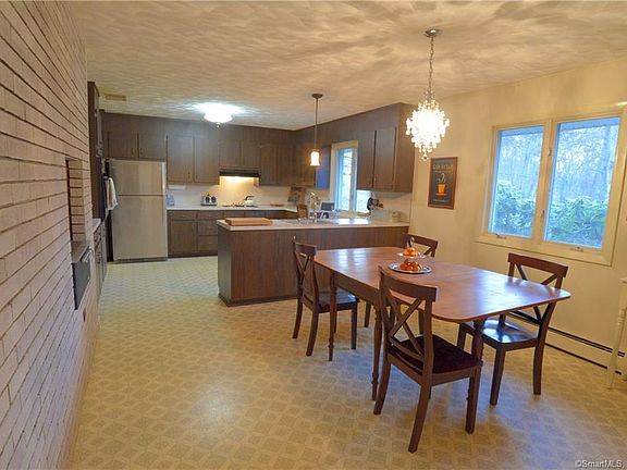 Spacious open floor plan with a Mid Century Modern Eclectic Vibe, everyone will find there own space in this 5 bedroom 2 and a half bath home. Room for multi generational living, in law potential with a downstairs kitchen, wood stove, additional living room with fireplace, laundry room, bedroom and separate entrance. Hardwood floors throughout most of the upstairs with Master suite, fireplace in dining room, and large living area with sliders to deck. Flexible floor plan. Central air. Spacious kitchen with a indoor grill that vents into the chimney. Short commute to 395, 20 minutes to Groton, Easy commute to RI
