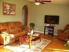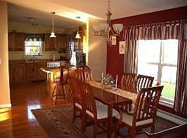 Beautifully detailed Oxford modular. Custom kitchen, hardwood flooring, extensive list of upgrades. Large garage w/14x26 storage room above. Large common lot directly behind home. This home was originally the 1st model home. Scenic views of Camden Hills. Association fee is $35 mo.
