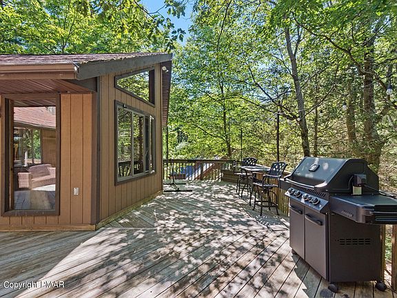 Extreme price drop! Ready to sell! BEST CURB APPEAL IN THE POCONOS! This Split Rock Resort A-Frame Chalet embodies the Poconos. With an unrivaled outdoor oasis on the expansive 900+ sqft deck, and towering ceilings with exposed beams, this home IS the Poconos. The massive family room has soaring 12+ foot ceilings, creating an open and airy atmosphere. With ample space and the potential to add 2 more bedrooms, this home offers it all! The location is a short 3 MINUTE drive to H2Oooohh!!! You'll also have a members only beach & lake, an observation deck, lakefront dining, indoor gym, 2 ski resorts, golf courses, and much more all within 1 mile.
