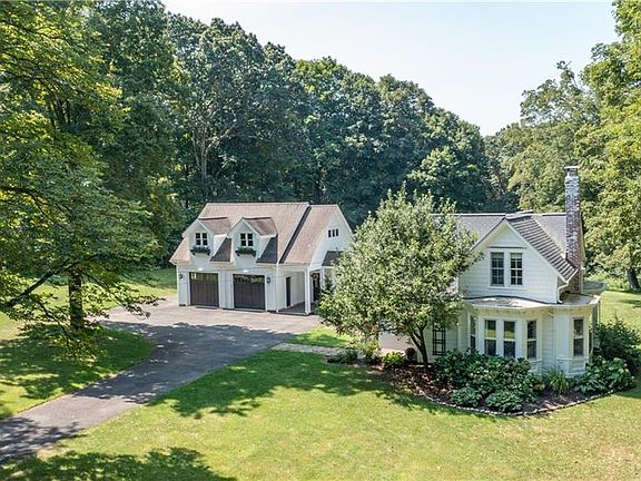 Buyer Beware! You will immediately fall in love with this charming, quintessential Connecticut beauty! This is the meeting of old world charm and 21st Century luxury. Nestled in a quiet corner of Redding, this lovely home sits on 2 acres of picturesque, level land surrounded by peaceful woods. Enter from the portico into the welcoming foyer and you will immediately be immersed in charm and warmth. The light filled gourmet kitchen features marble counters, high-end chef-grade appliances, custom cabinetry, farm sink, a large island with plenty of room for seating as well as a quiet nook with window seat. The adjacent dining room with coffered ceiling allows for perfect flow for entertaining. Enjoy quiet evenings at home in front of the fireplace in the spacious living room with two charming window alcoves and an abundance of light. There is a main floor bedroom with built-in desk and easy access to the main floor full bath with shower. Upstairs you will find the master bedroom, a luxuriously updated full bath with spa tub/shower plus the third bedroom. Lastly, the creme de la creme is the huge screened in porch on the back of the house which makes for the perfect 3 season space for family hang outs, entertaining or just quiet reading. Through the portico is the detached garage with a second floor (plumbed for a bath) with unlimited uses....home business, in-law apartment, art studio and so much more! New Central air, oil tank, gutters, water treatment, exterior paint and more!