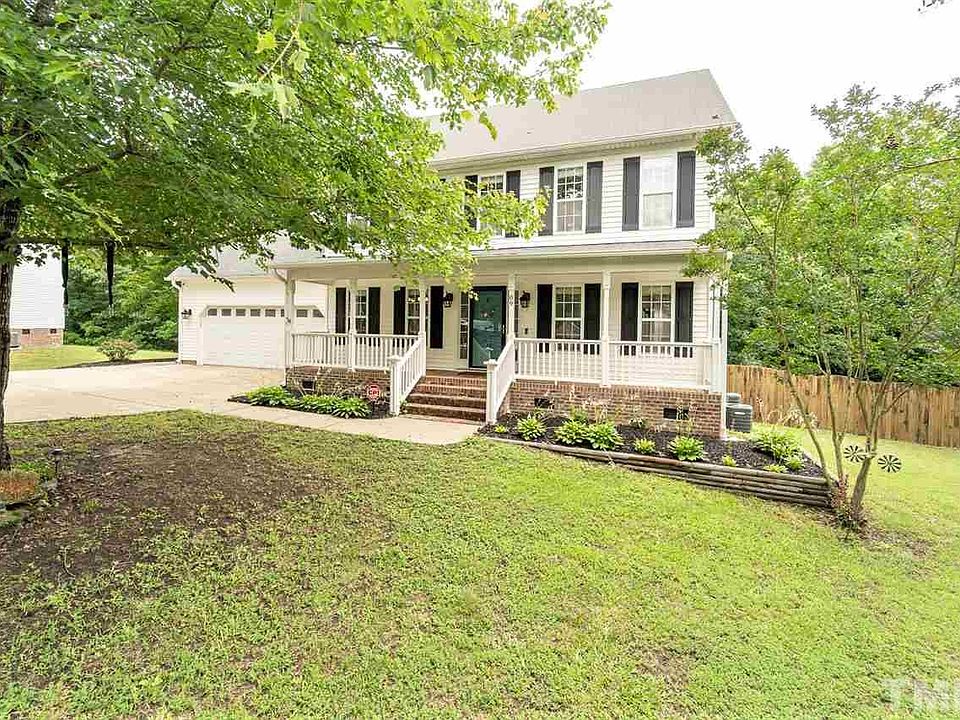 Beautiful bright & open floor on flat .75 acre culdesac homesite. Easy maintenance vinyl exterior w/rocking chair front porch. Living room & dining room w/laminate hardwoods. Spacious family room w/fireplace, laminate hwoods, fan & wall of windows open to kitchen w/granite island & ctops, tile bsplash, pantry, black SS appliances & breakfast nook. Master suite w/private spa bath & walk-in closet. Huge bonus room. 2 car garage. Deck overlooking fenced backyard. No city taxes & low HOA dues!