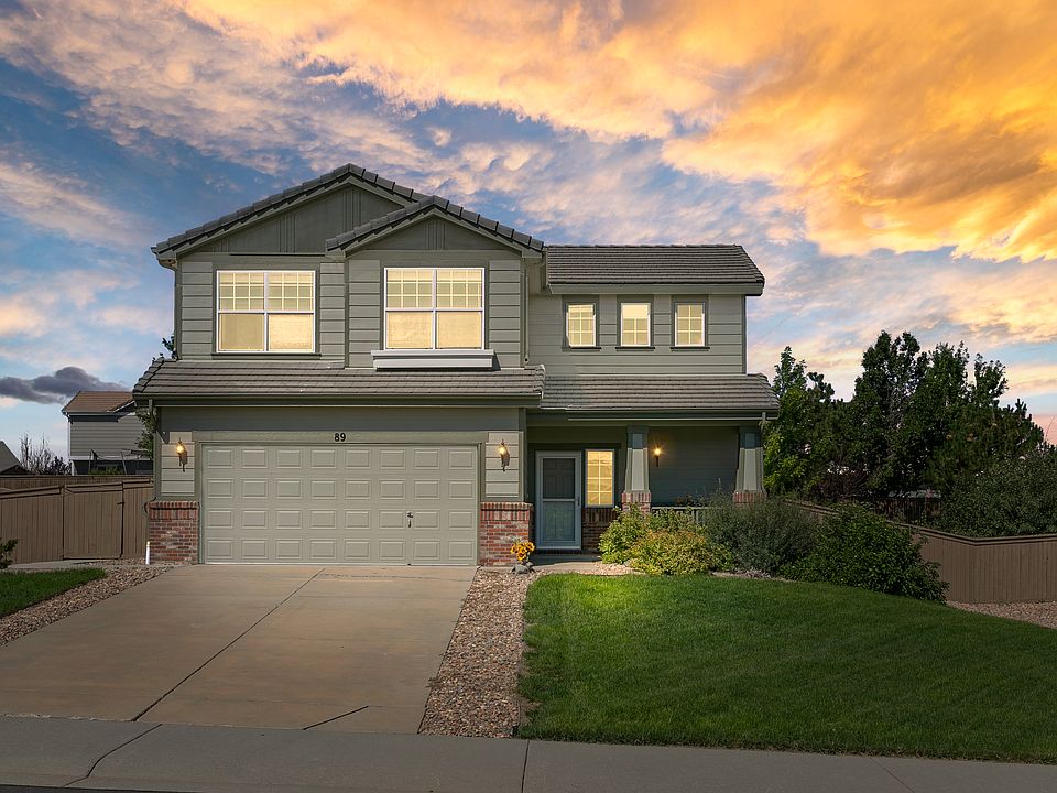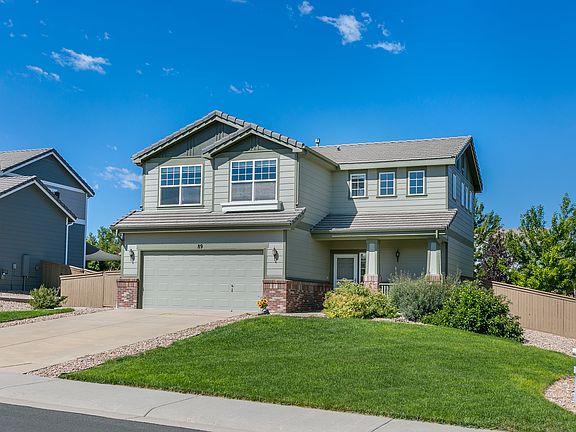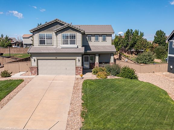 Welcome home to highly sought after Castlewood Ranch. Pride of ownership is evident is this well maintained three bed, three bath home with loft office nook. Enjoy your huge backyard that is beautifully and professionally landscaped to create a garden-like, green oasis. Relax on the back patio under the pergola with friends and family. Kitchen has been remodeled and all new carpet has been installed. Room darkening shades are installed throughout. Additional features include a convenient utility door from the garage to the outside, a storm door on the front door and all appliances convey with the home including the refrigerator and washer and dryer. This home is near great schools including Flagstone Elementary and Mesa Middle School. Great trails wind throughout the neighborhood.