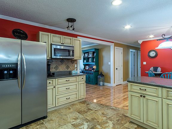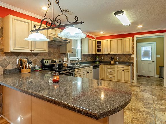 Cute 3 bedroom, 1.5 bathroom move-in ready home! You are welcomed by a cozy living room area with a natural gas log fireplace! The eat-in kitchen is stocked with an ample amount of gorgeous custom cabinets and counter top space, appliances, and stunning tile backsplash! The home is filled with beautiful wood like laminate flooring through out! The master bedroom features a spacious master bath with a large walk-in tiled shower! Relax and enjoy the day from the sun room! Enjoy the fresh country breeze from the covered front porch! Outdoors also features a attached workshop, a concrete drive way, and so much more! Call today for your personal tour of this amazing property!