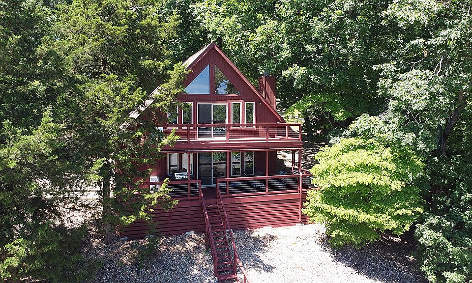 Looking for privacy, an updated lake house, tons of parking, concrete dock in an amazing cove? Here you have it! Pride of ownership abounds in this well maintained lake house. Updated kitchen w/ granite, fresh cabinetry, tile floor & beautiful tile & glass back splash, all of the bathrooms have been perfectly renovated w/ tile, cabinets, sinks & fixtures. This isn't the average lake house, featuring two living areas, 1 being the large loft space that works as both the 3rd bedroom (non-conforming) as well as a cool hang out space overlooking the Lake of the Ozarks w/ its own generous sized deck. A private master suite tucked away from all of the guests & activities. Lots of land here to build a garage & a shop or large out building. Seller has had 12+ cars at the house. This package is complete with the concrete dock, a good sized swim platform along with the PWC slip. Lots of furniture included - there isn't another lake home that shows this well in this price segment. Don't miss it!