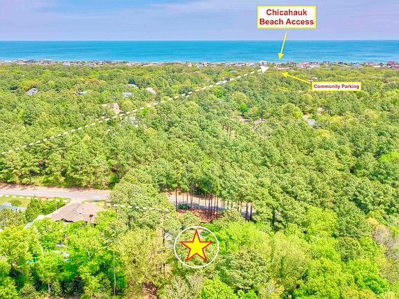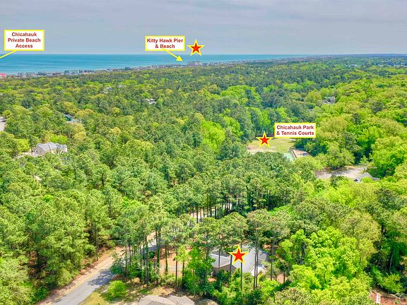 A rare and fresh find in Chicahauk, one of the most sought-after communities in all of Southern Shores and the Outer Banks. This gently-used second home is completely turn-key within walking distance to the community's life-guarded beach access offering a much newer effective age post 2014 remodel. Tucked away on a beautiful half-acre-plus parcel in premier location just blocks from the oceanfront this 3 bedroom, 2 full bath home offers a spacious modern floor-plan with single-level living, vaulted ceiling Great room, remodeled Kitchen & baths with ensuite bedroom, gorgeous engineered Hickory floors, plenty of storage with huge walk-in Pantry, a separate walk-in Laundry room, attached garage, upgraded storm doors on exterior and rear deck/yard with an abundance of privacy in an X-flood zone. There's more! The home conveys completely furnished with fresh modern decor and fronts a section of the community's peaceful greenspace for ultimate seclusion. You’ll be welcomed by the lovely semi-circle driveway and charming landscaping. Should easily accommodate the addition of private pool or your own home expansion vision. Current rental projection available with estimated gross income over $50,000 annually. Chicahauk features a private beach access plus separate beach parking for owners and guests, and you're just steps away from a community park with tennis/basketball courts, playground, nature trails, bike and walking paths to nearby restaurants, shopping, specialty stores, wildlife and more. Join the Southern Shores Civic Association for $95 annually and enjoy Soundside Marinas with boat launches & slip rentals, picnic/fishing/crabbing areas, Sound front sandy beaches, additional Private Beach accesses, parks, tennis, basketball and soccer fields. With little investment make your dream of beach home ownership a reality in one of the most coveted communities on the Outer Banks. Improvements per sellers as follows: New Heat pump (2021), Hot Water Heater (2019), Roof (2014), Septic Drain Field (2010), Schedule your tour today- this cream puff will be gone in a flash!