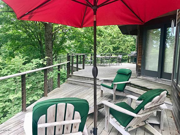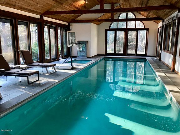 TreeTops: Special 30-acre mountainside retreat. Absolute serenity with views... now with fiber internet! A beautiful long driveway takes you past a private pond & up to a stunning contemporary home. Take a swim in the heated, large indoor pool, hot tub, & relax in the steam of the indoor sauna. Friends and extended family have plenty of room to share this beautiful home! Large windows with lots of light & an open floor plan.... 3 floors of beautiful living spaces including a fabulous billiards and game space! Finish your evenings on the large deck listening to the wind on the pines.