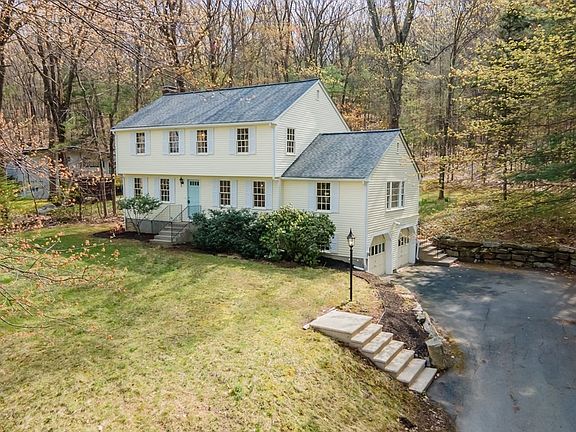 Enjoy seasonal sunsets and tranquil woodland views from this classic Colonial superbly sited on one of Bolton’s prettiest country roads. The updated kitchen flows into a spacious front-to-back family room graced with a cozy fireplace. A delightful home well suited for entertaining! Host a dinner party in the formal dining room, gather in the fireplaced living room or relax on the sprawling Trex deck overlooking a serene yard & expansive woodlands offering wildlife views – a nature lover’s paradise. This 2,100 sq ft Bolton Beauty exuding enticing warmth & charm boasts handsome hardwood floors & a fireplace framed with cobblestones reclaimed from a Cambridge bridle path on which Paul Revere rode. The upper level offers 4 well-proportioned bedrooms & 2 full baths including a primary bedroom suite with private bathroom. Benefit from great schools, nearby conservation trails & the feeling of getting away from it all while enjoying easy access to major routes, shopping & dining. A gem!