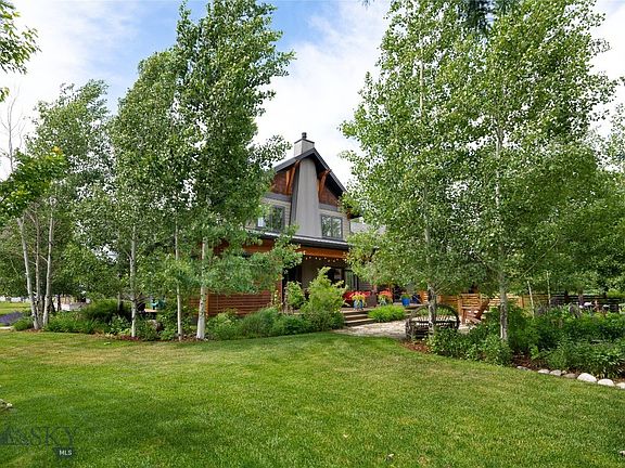 Outdoor enthusiasts will enjoy the serenity of living in this high quality, custom built, Jim Syth, 4B|3B + office architectural delight. Surrounded by mature trees for ultimate privacy on one the most admired lots in West Meadow. You'll be captured immediately, and benefit from, the beauty of a master gardener's expert touch with fragrant shrubs, mature trees, colorful wildflowers, potted plants. Your senses will be enthralled throughout the summer as different plantings come into bloom, like a symphony right on cue. The soaring rolled steel fireplace stops you in your tracts as you enter the hope and gaze up the double-height masterpiece. Solid hardwood floors and double glass doors on either side complete the look and allow for seamless living indoors and out. Designed for connection to nature and entertaining with an open and airy feel welcoming you with main floor living at its finest with huge covered deck with fireplace for relaxing, grilling, entertaining. The chef will love all the counter space, double ovens, and big walk-in pantry. Primary suite complete with double glass doors to the outdoors, spacious bathroom with dual vanity, soaking tub, glass enclosed tiled shower. Work from home in the spacious main floor office off the living room and covered deck. Upstairs are 2 bedrooms, full bath connected by an open walkway with custom iron railings open to below. And, a completely separate ADU with it's own exterior entrance or it can be incorporated into the house by an access door at the end of the upstairs hallway. Super flexible space! A fenced yard in addition to the extensive deck and patio area. Home has AC. Instant Hot Water. 3-car heated garage off the alley. An outdoor lovers paradise with trail access across the street that connects to the miles and miles of "Mountains to Main Street", Tuckerman Park/trails along Sourdough Creek. The perfect spot for quick access to the Hospital, MSU, Shopping, Dining, Downtown (by car or trails). This is a WOW property sure to please the most discerning buyer. Make your appt today.