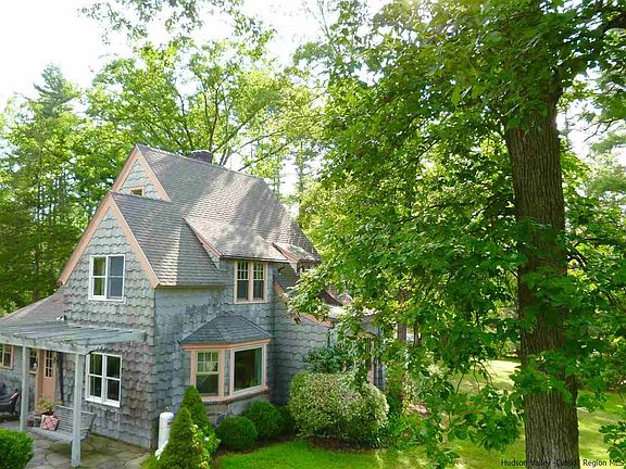 An iconic and stately compound located just as you arrive into Woodstock with storybook style and loaded with charm and character both inside and out. Just a mile from town and set back from the road, this well loved beauty sited on 6 acres has been updated in just the right places. An expanded and super well equipped kitchen welcomes you and your guests from the bluestone patio and pergola. Once inside, the flow is open and easy from the heart of the home to the living, dining and den areas. Windows abound and many archways add architectural interest and warmth. In addition to the three amply sized bedrooms in the main house, there is a finished studio apartment above the garage suitable for a legal rental, extra guest/nanny space or office. The ground floor level is zoned as a 3rd living unit or rental if one desires. It has a full bath in place, and just requires sheetrock and flooring. This could make a fantastic art studio or work space as well. The grounds offer many opportunities for gardening, or simply enjoying nature and the paved circular driveway provides easy and elegant access. Municipal water, room for a pool and tennis court and Onteora Schools. Make this happy home yours!