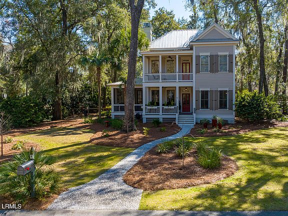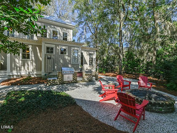 This custom home built by Gallant Homes has so much to offer and is in excellent condition. This Lowcountry design has an open floor plan, wainscoting, coffered ceilings, crown molding, heart pine hardwood floors throughout living areas, and tile in the baths. The kitchen features quiet close cabinetry, granite countertops, tiled back splash, walk in pantry, and high end appliances. The main floor has the primary bedroom, with a walk-in closet, granite top vanities, a soaking tub and a walk-in tiled shower, and double doors to the screened porch. Upstairs has 2 guest bedrooms, each with a full bath, and a living area for reading or watching TV. This home also features an apartment over the garage, with a fully equipped kitchen, separate bedroom, and living space. Outside find tabby sidewalks, an outdoor kitchen, fire pit and private sitting area. Off the back porch is a custom dog house with a metal roof and window box. The garage offers a cobalt Wall Tool System, an outdoor shower, and painted garage floor. Beautifully landscaped, this home is ready for you to move in. Coosaw Point has beautiful amenities to include a River House, with fitness center, a Riverside pool, tennis court, Community dock, Boat landing a Crab Shack and 3 pickleball courts.