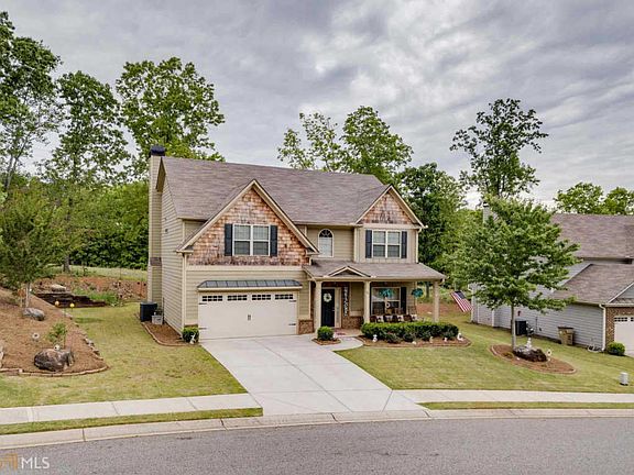 Wildflower is only minutes from I-85, and conveniently located to Mall of Georgia (Buford) & Tanger Outlets (Commerce). This craftsman-style home features shakes & brick accent, covered rear porch, wood burning fireplace, decorator paint colors, granite tops, stained raised-panel cabinets, island, 4 bedrooms & 2 full baths upstairs, and 1/2 bath on main, 9 ft smooth ceilings, vaulted secondary bedrooms, master suite features trey ceiling & large walk-in closet.
