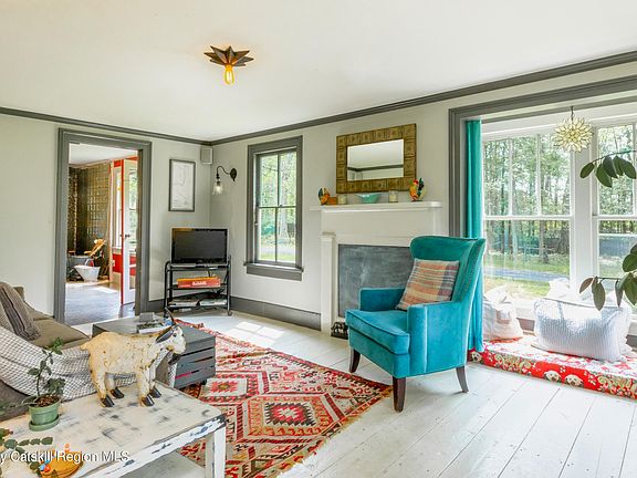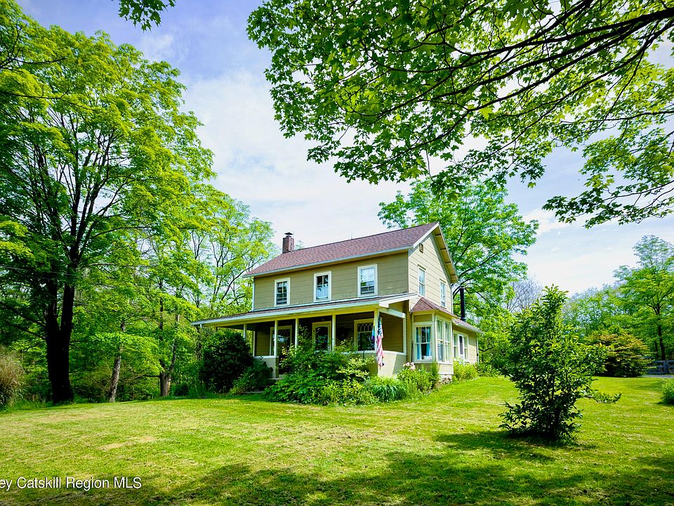 Discover the timeless charm of this enchanting farmette in Accord, NY. Nestled on 3 special private acres in the heart of the Hudson Valley, this property offers a perfect blend of historic elegance and modern convenience. The home, a lovingly preserved farmhouse from the late 1800s, stands amid mature forest and sunny meadows, offering a sense of tranquility and privacy without sacrificing the airiness and vistas. Step inside, and you're greeted by an airy interior that celebrates its historical roots while embracing contemporary updates like whole house standby generator, new washer/dryer and sound mechanicals. Hard to find period details like paneled doors, wood floors, stained glass windows hit you at almost every turn. The living spaces are both cozy and functional, perfect for both intimate gatherings and lively dinner parties. The heart of this home is undoubtedly its kitchen—ample space to unleash your inner chef, complete with updated appliances, wood burning stove, and charming dining area. The living rooms wrap around the home stretching out the possibilities for entertaining family and friends. The entire first floor is typically always flooded with beautiful natural light. Upstairs are 3 fully functional bedrooms and two full baths, plus a 4th bedroom that can flex as an office or small studio space. The primary bedroom offers a private ensuite bath and great natural light. The real magic of this property extends beyond its walls. From the quintessential rocking chair front porch to the bluestone walkways, to the large classic red barn, these are just some of the sought after features that add to the appealing farmhouse aesthetic and gives a blank slate opportunity to transform these spaces further to accommodate a wide variety of uses. The versatile two stall shed row barn with feed room offers even more possibilities—imagine converting it into a pool house for summer fun or continue using it to shelter horses or other farm animals. All of this with multiple fenced in paddocks making this a truly ready to go homestead on day one. A scenic path toward the rear of the property winds through the backwoods, leading to a year round creek with its own mini swimming hole. This tranquil spot is perfect for lazy afternoons spent fishing or simply taking a refreshing dip. The property offers the best of both worlds: the open, pastoral feel around the house and the secluded, wooded area that leads to the creek. Located in Accord, NY, this property puts you at the heart of a thriving local community. Just a stone's throw away is Inness, a destination for fine dining and luxurious relaxation. Arrowood Brewery, Westward Orchard, Stone House Tavern, Kelders, and Saunderskill Farms all offer a variety of local flavors and activities for all ages. Whether you're a foodie, a craft beer enthusiast, or a lover of fresh, local produce, you'll find your cravings satisfied here. Outdoor enthusiasts will rejoice at the proximity to the Mohonk Preserve and Minnewaska State Park. These natural gems provide thousands of acres of protected land for hiking, climbing, and exploring, ensuring your adventures are always within reach. This farmette is more than just a property; it's a gateway to a simpler, more fulfilling way of life. Whether you dream of raising animals, cultivating a veggie garden, or simply enjoying the peace and beauty of upstate New York, this home offers the space and facilities to make those dreams a reality. In a market where inventory is low, finding a turnkey home with this level of charm and convenience is a rare opportunity. This lovingly preserved farmhouse invites you to move right in this summer and start living the Hudson Valley life. Don't miss your chance to own this idyllic farmette in the heart of Accord, NY.