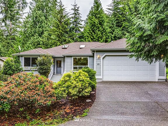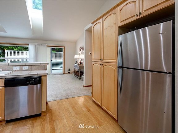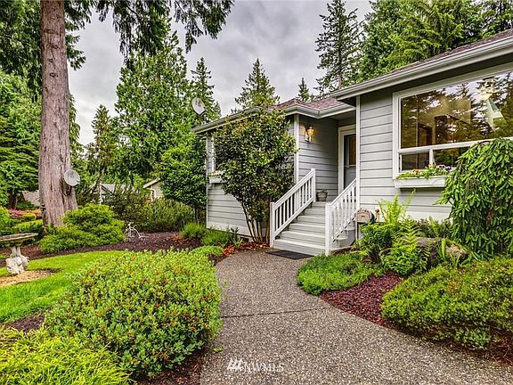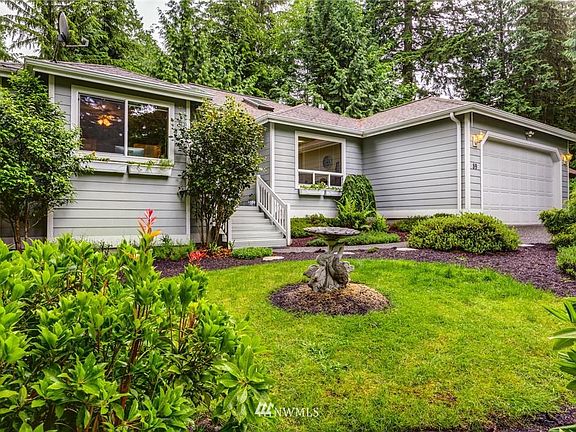 Lovingly cared for single-level living near golf course, lake and more! Step into this thoughtfully laid out home w/ vaulted ceilings, massive skylights & hardwood floors in the kitchen, dining & master. Gas fireplace and central A/C for year-round comfort. Master suite has a jetted soaker tub & walk-in shower, plus access to the extremely private back deck. Meticulously landscaped front yard offers privacy and a park-like feel. Enjoy summertime strolls along the golf course & to the marina!