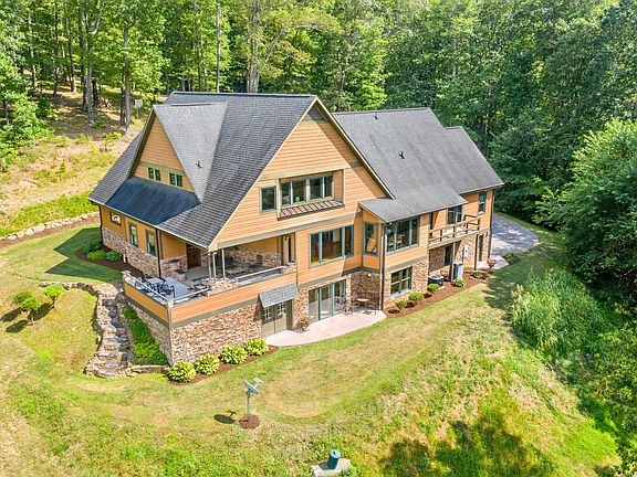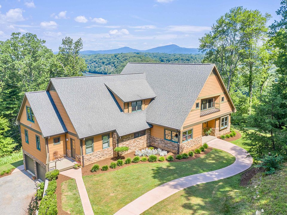 Exceptional custom-built home situated on 5 wooded acres offers privacy with beautiful mountain & lake views; Great Room w/vaulted ceiling, Gas Log fireplace, open kitchen with custom cabinetry, stainless appliances, Larger walk-in pantry; entry level owner suite w/tile shower, walk-in closet; upper level 2nd bedroom ensuite w/walk-in closet, spacious sitting room, 3rd full bath and 3rd Bedroom; finished walk-out lower level offers, 4th Bedroom, 4th Full Bath, Rec. Room, and storage.