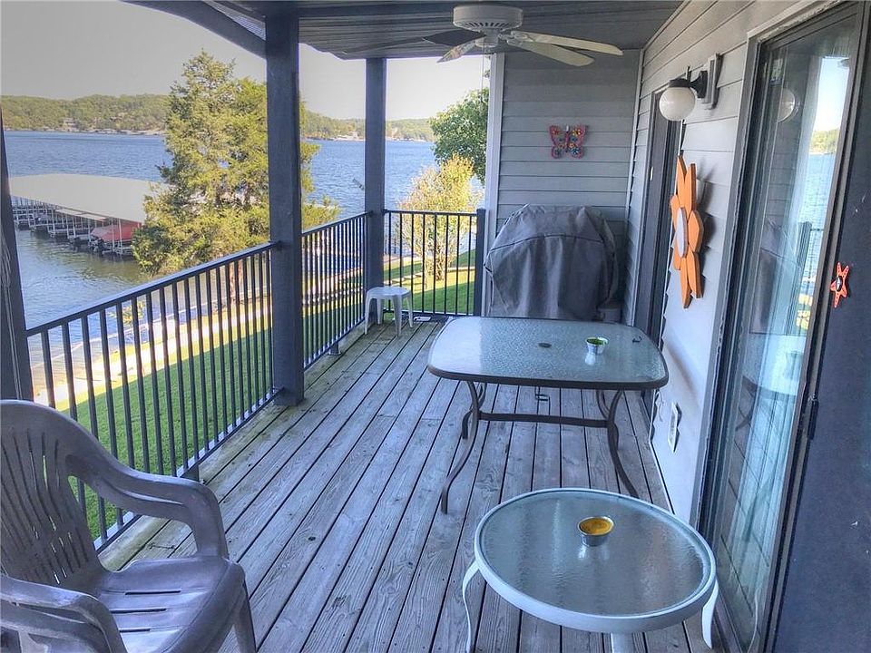 This very attractive lakefront unit has a spectacular view of beautiful Lake of the Ozarks! The Large spacious deck is accessible from the living room and or master suite & offers a gas grill & a storage closet. The living room & dining room combined offer a lot of space for friends & family. Set up to have plenty of overnight guests this condo can sleep 8 easily. Totally furnished with pull out sofa, dining & bedroom furniture. A large pool & deck located just a short walk away. There is a club house as well for inclement weather get togethers' & a boat slip with a hoist. Ample parking as well as trailer & guest parking are located right next to building 89. All of this with some of the lakes most reasonable HOA fees! This one won't last!