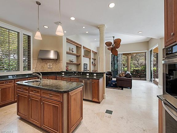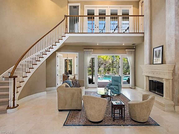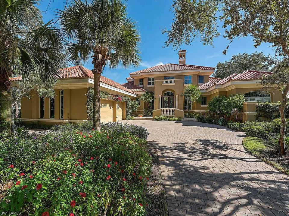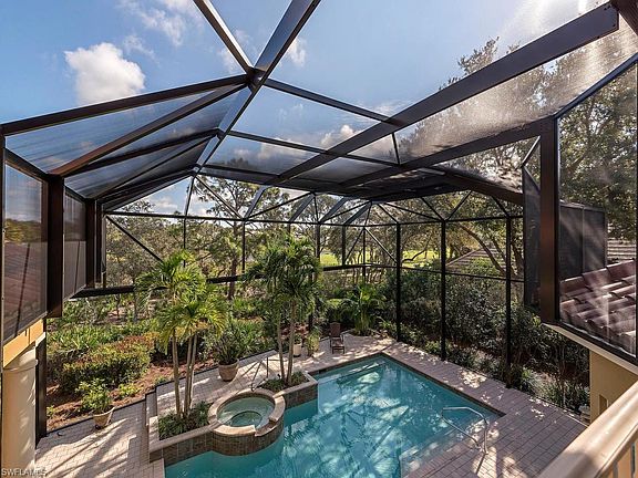 H.13334 - Exceptional value - look no further! A brand new roof. A brand new screen enclosure. An over-sized 3.5 bay garage. Huge sunny outdoors for poolside relaxation. This gracious golf estate on hole #8 has it all, from a spacious design for open-plan living, to soaring ceilings for light and bright interiors, to beautiful marble and wood floors. You'll love the chef's island kitchen showcasing two pantries, a plannng desk, stainless appliances inc. double ovens, granite tops and custom wood cabinetry with lots of pull-outs. The master is a dream suite, featuring a sitting area, two sets of French doors to the lanai, two over-sized His & Her wardrobes, and a marble bath with two large dual sink vanities, make-up vanity alcove, deep soaking tub, dual-head shower, commode room inc. bidet, two linen closets, and tankless water heater. Nestled against a fenced backyard that is framed by naturally preserved foliage with golf and lake scenery beyond, privacy abounds on the pavered lanai where a large pool with spa and raised sundeck take center stage. This jewel lives comfy & cozy and entertains in style, too! Call the Resident Agent for a tour of the brand new club facilities.