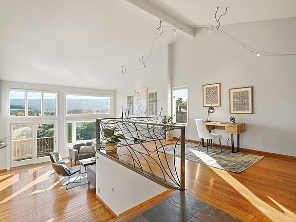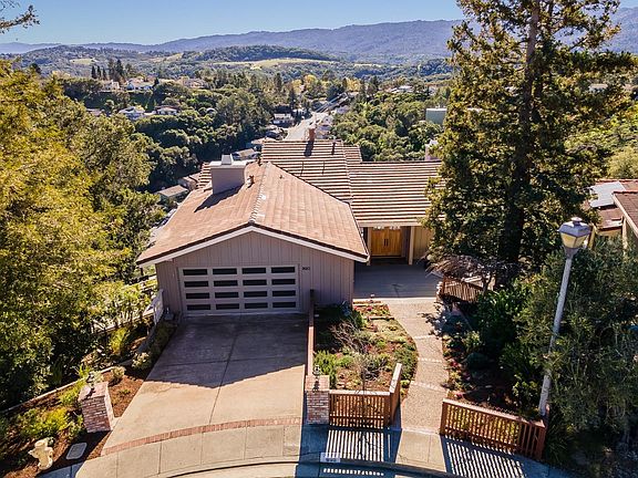 Nestled in the hills of San Carlos, on a quiet cul-de-sac and adjacent to Big Canyon Park, this special home offers an abundance of privacy and the most serene views of the Bay and mountains. The gourmet kitchen, open to the family room, is a delightful area to entertain with its gorgeous views, bar seating area, fireplace and loads of counter space and storage for the cook. The upper level features a spacious primary suite with high ceilings, views, fireplace, two walk-in closets plus a wardrobe closet, soaking tub, tile shower with built-ins, dual sinks, make-up vanity and a separate exercise room or nursery. A smaller suite, located on the lower level, can serve as a second primary suite. Enjoy the outdoors with its terraced garden and numerous decks overlooking the canyon, mountains and the moon rising over the bay.