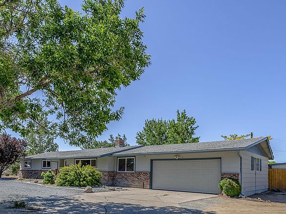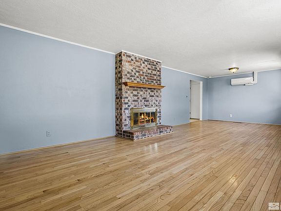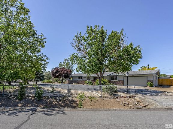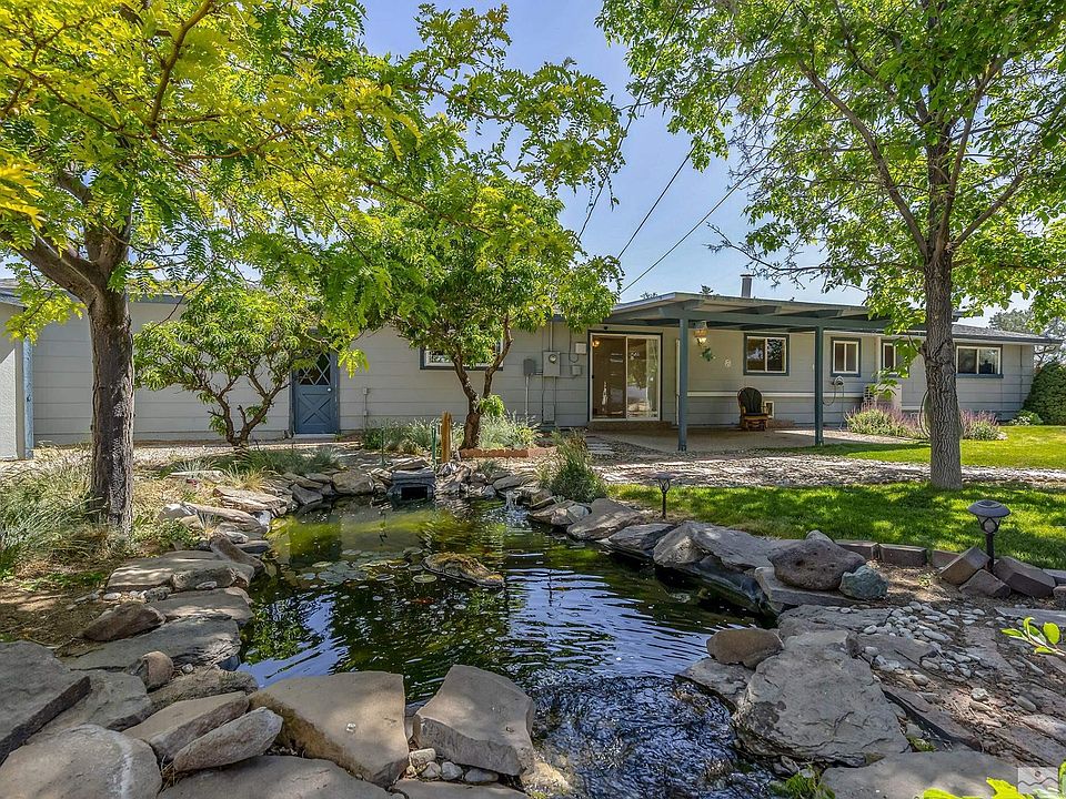 Golden Valley horse property on a corner lot with RV access, a circular driveway, and other nice upgrades including; three Mitsubishi Mini-Split Heat/AC units (plus central heating) updated kitchen, wood floors, vinyl windows, two sided fireplace and more. The tranquil and private back yard has a koi pond, storage shed, covered and uncovered patios and mature shade trees. Approximately half the 1 acre lot is separately fenced with a small tac/work shed (with power) plus a 2 car metal carport.